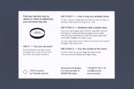 Claudia Lassner kreiert mit ihrem Label COCii zeitlose Schmuckstücke, die aus einer Reihe kultureller und ästhetischer Einflüsse inspiriert sind. Zu ihren vielfältigen Interessen zählen u. a. das Alltägliche, Mode, Musik, Science Fiction und der Glamour der Zwanziger Jahre. Alle Stücke werden mit viel Liebe zum Detail in ihrem Münchner Studio handgefertigt.